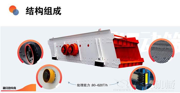圓振動篩由激振器、篩箱、篩網、振動器、隔振裝置、底座及支承裝置組成。